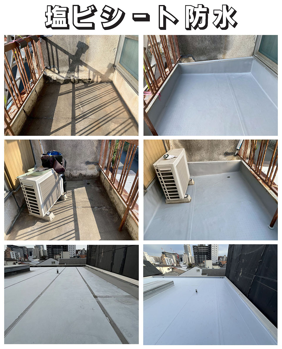 | ベランダ防水工事 | 普通のお宅であれば殆ど1日で完工します。屋上や陸屋根の場合は3.4日ほどで完工する事が殆どですが、広さ、形状により前後します。 |